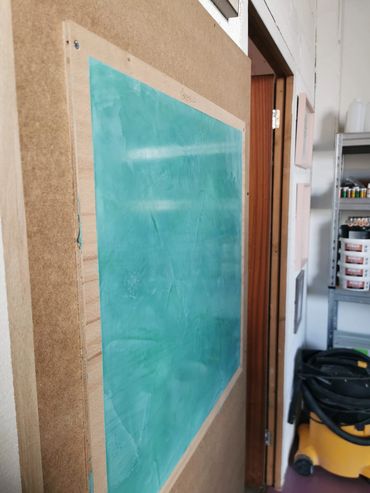 A second coat applied thicker to give a "stone effect", golden metallic mixed to give off a rustic finish. Perfect setting for a bar area.